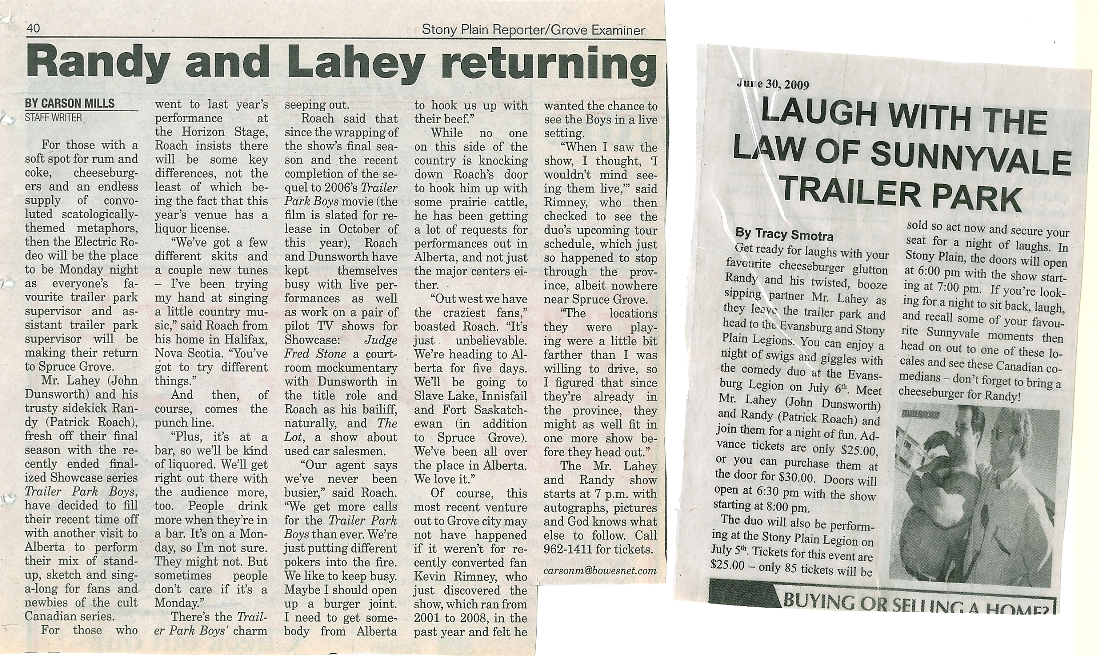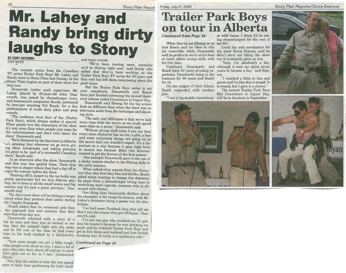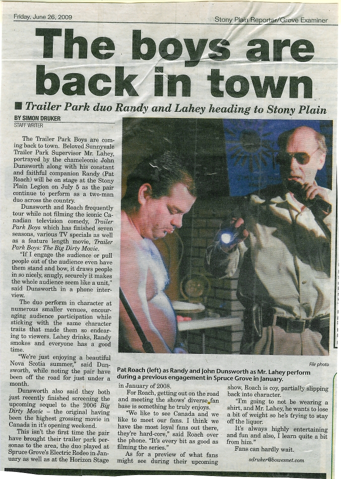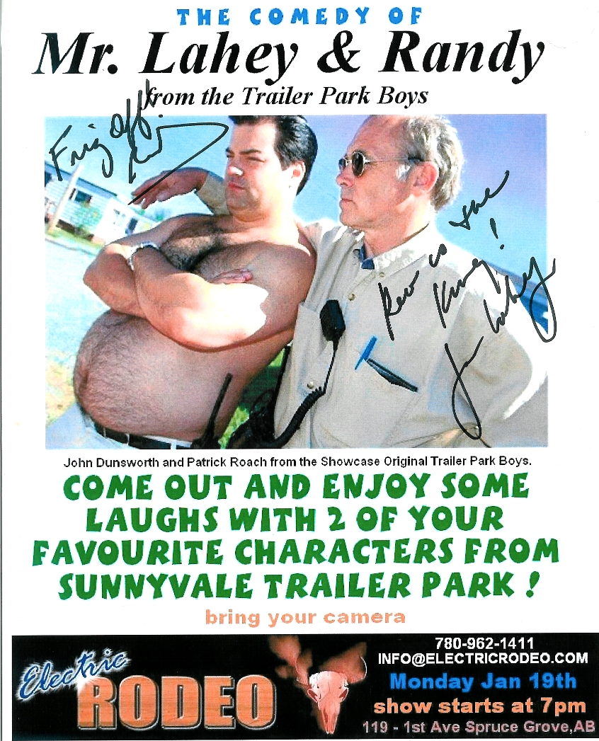 In 2009 I hired John Dunsworth and Pat Roach from the Trailer Park Boys for a few small shows. In 2011 I hired Swedish band Baskery and in