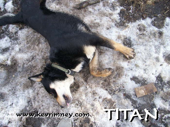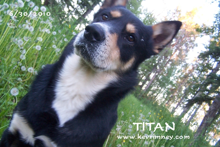 Titan. Rescued him as a month old puppy someone had tossed in a snowbank. He had mange, lice, worms, and was starving. Well I nursed the lil' guy back to health and he was my best friend for 11.5 years. Couldn't have asked for a better dog.