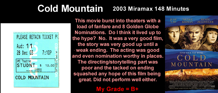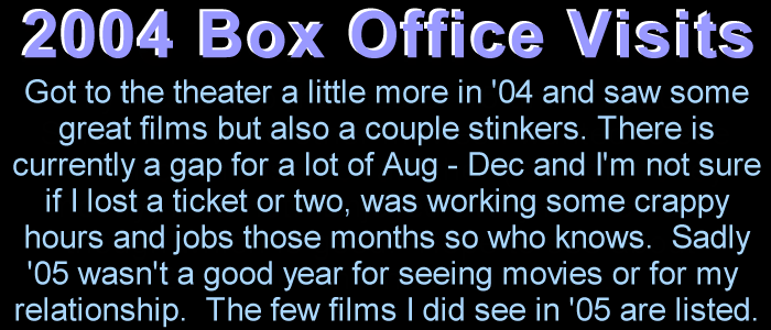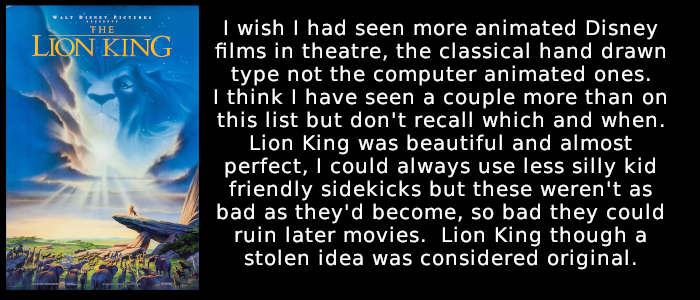 This is to be a list of every movie I've seen in theatre that I can remember, sadly I've lost some tickets.