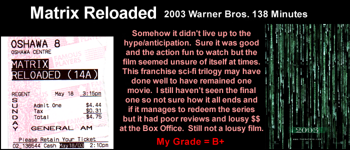 The Matrix - Grade A+ (given 20 year after seeing the film)